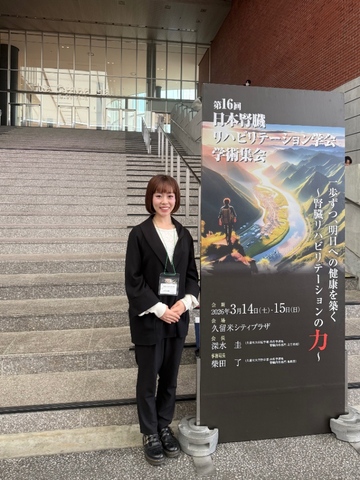 慢性腎臓病患者に対する運動療法や多職種連携、透析運動療法に関する最新の知見を学ばせていただきました。 今回得た知識を日々の臨床に活かし、患者さま一人ひとりに寄り添った支援ができるよう努めてまいります。 文責:理学療法士 大村唯菜
